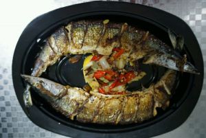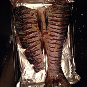 鱼洗净。用盐,花椒,姜,黄酒,十三香腌制,2小时左右。把鱼装烤盘,烤箱预热,上下火210度,烤30分钟,再关下火,烤5分钟,使鱼皮变脆。