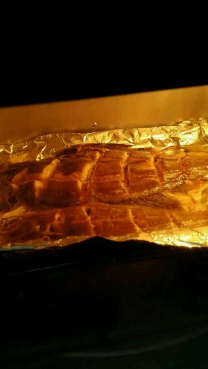 烤箱预热 托盘放锡纸,把鱼放上面烤到划痕裂开不淌汁后拿出(烤之前刷料汁和油,料汁是用酱油和蚝油,糖调制的,只需少许酱油)烤制过程需刷多次料汁和油