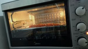 COUSS卡士CO-530E前后火自动补色烤箱,烤盘放入中层,用下火230度,烘烤约20分钟至入味。