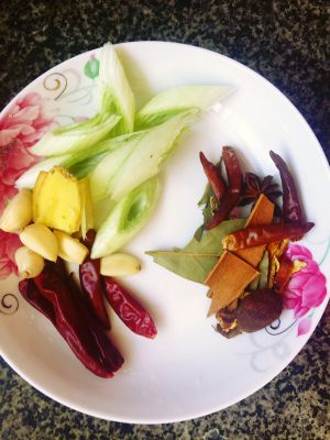食用油(量多点),热油炒陴县豆瓣、葁、蒜、八角三个、香叶、丁香十粒、炒香。