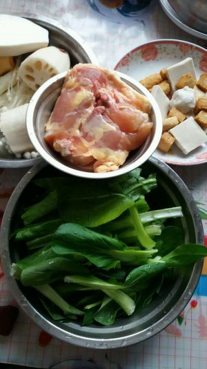 准备油菜,油麦菜,金针菇,杏鲍菇,千页豆腐,鱼豆腐,虾丸鱼丸,山药红薯,喜欢吃什么就买些吧。喜欢鸡排肉,也可以准备一块。
