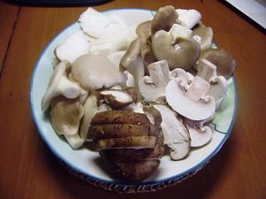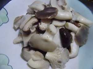 平菇秀珍菇蘑菇鸡腿菇洗净沥水切片,鲜香菇洗净捏干切片