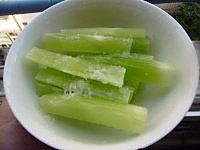 香莴笋洗净去皮切小段,加盐腌十五分钟左右捏去水份待用。