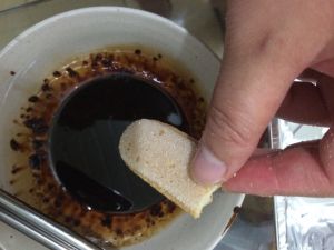 黄油放入奶锅中加小火融化,依次加入蜂蜜和小苏打搅拌均匀