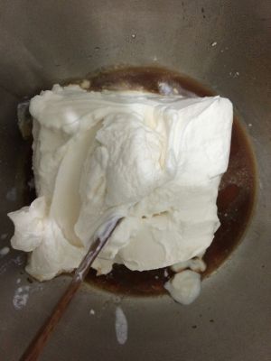 把卡斯马尼奶酪中加入咖啡蜜力娇酒打顺滑