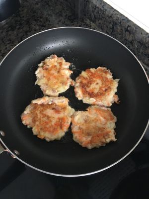 烧热锅放入少许油, 将虾仁土豆饼放入锅中小火慢慢煎;