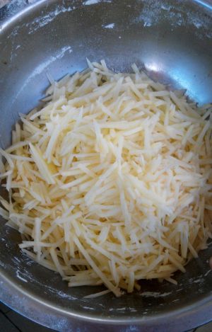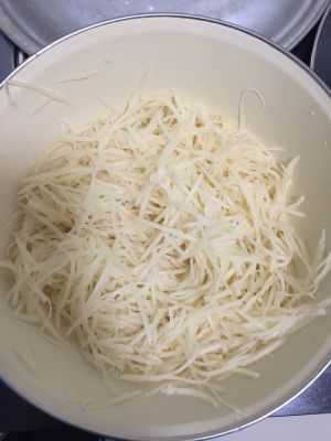 土豆擦丝,可以适当切短点。