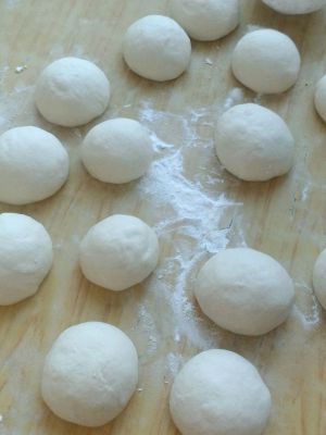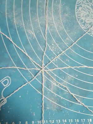 面团发酵好后揉光滑,分几个均匀的剂子。棉线4根,摆好。