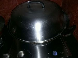 放入鱼头,淋50克左右蒸鱼豉油,到处淋。