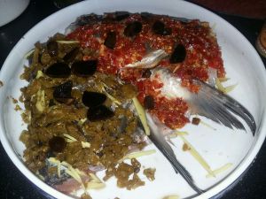 锅里烧高油温油淋鱼头酱上,搅拌均匀。