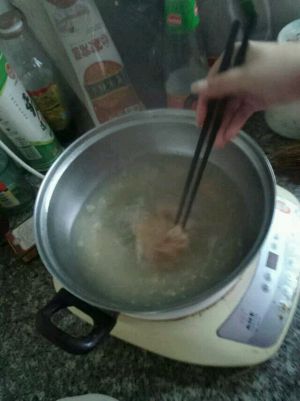 烧水加入少量料酒焯制鸡肉至七到八分熟,哈哈其实鸡肉扔进去滚两个弯也就差不多啦