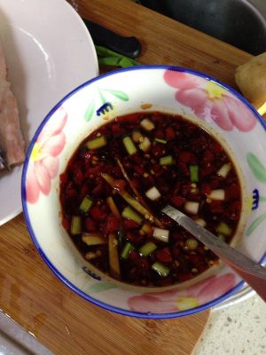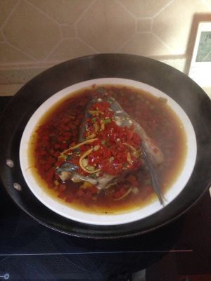 4-5勺的油加热至冒烟,浇在鱼头上,撒些葱花,收工!