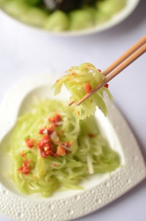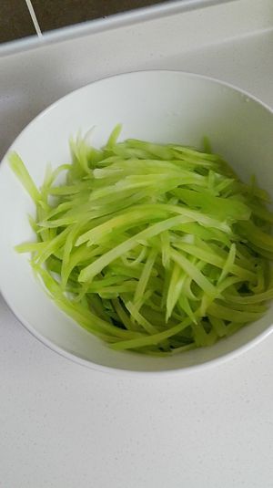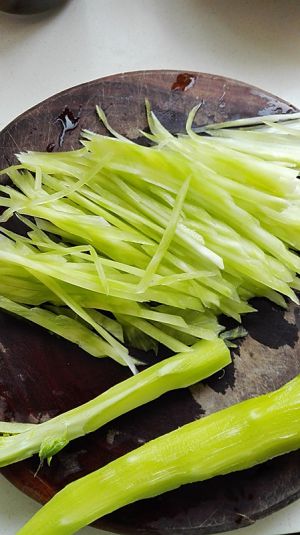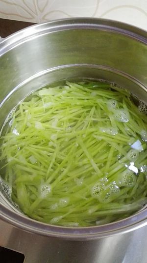 莴笋叶洗净,开水下锅焯一下,变软即可捞出放入纯净水中冷却。