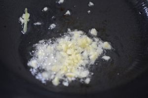 食用油烧热,加入蒜蓉稍微拌一下,关火,不能让油跟蒜蓉变黑