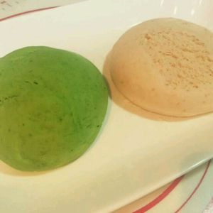 蒸好的杂粮馒头,(还有豆沙馅的 是用粘面包的)馒头特好吃一股玉米奶香味!