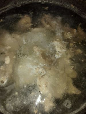 捞出排骨,烧开后的排骨汤水不要倒掉,留作备用。