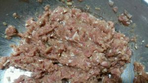 将肉馅稍微打上劲即可。