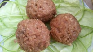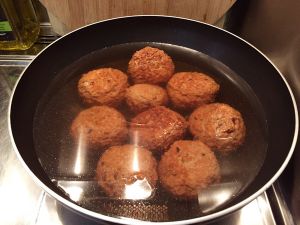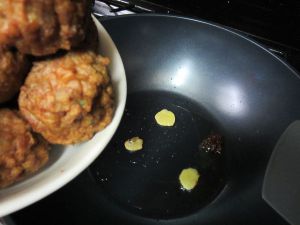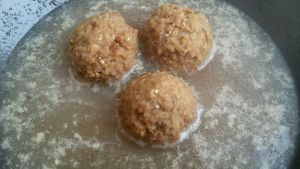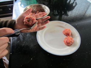 之后锅中倒油,然后在烧油的同时将肉馅捏成丸子备用