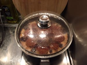盖上过锅盖小火炖大约1小时,期间给丸子翻面