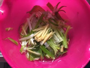 葱姜切丝,温水泡出葱姜水,去腥效果很好