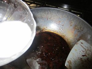 水剩四分之一时加入水淀粉,大火收汁,是汤汁粘稠
