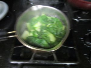 用带有肥肉粒的清水炖煮十五分钟左右