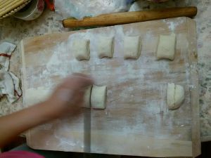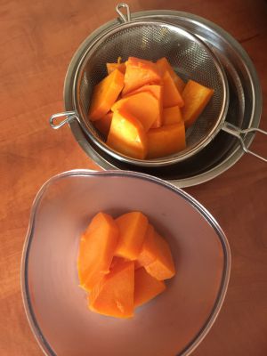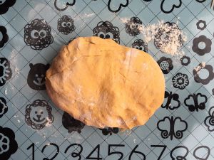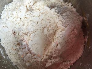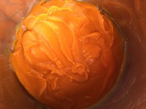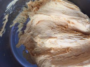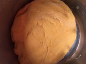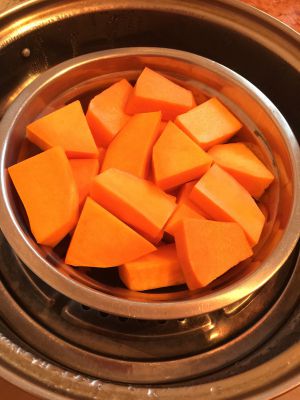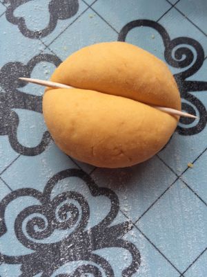 南瓜糊别一次性倒入,南瓜有很多水分,防止面粉不够哦