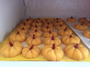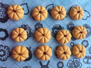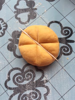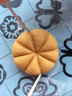 牙签多备几根放在面粉上,在面粉上滚一下就不会粘在南瓜上了