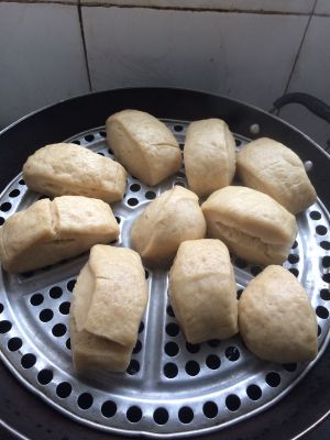 蒸15分钟,出锅。就可以吃啦。自然开裂的馒头。很好吃。家里老人小孩都爱吃!