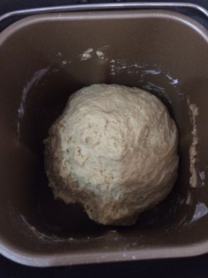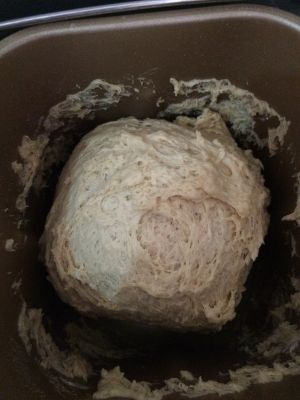 面团发酵好的样子,发酵好后把面团放在面包里停留20分钟,再拿出来。^_^(有时候我偷懒不等20分钟也直接拿出来了!)