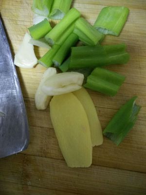 放入姜丝 葱段 料酒 少许盐
