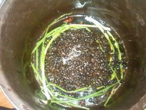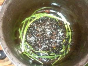 3.锅中烧油,油热放入油麦菜翻炒,然后放入蒜末一起翻炒!