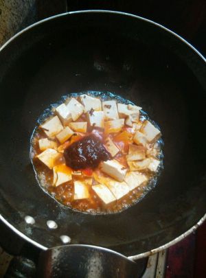 豆腐较嫩,不能翻炒,只能翻动下锅两分钟后麻辣酱。(酱中有盐,无需放盐)