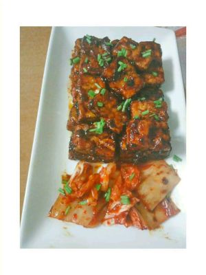 豆腐回锅煎至金黄,浇上做好的酸甜酱汁翻炒均匀,开大火快速收汁。食用前可根据口味再次挤入番茄沙司。