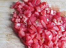 西红柿去皮后也切成丁。