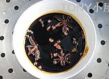 碗里放入小半碗左右的酱油(老抽);放入八角,花椒和香叶;水开后放入蒸锅改中火蒸20分钟。