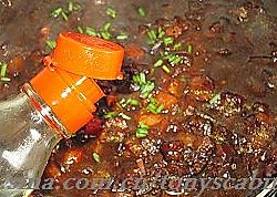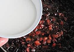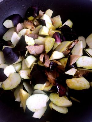 把蒸好的酱油放入一部分煸炒给茄子上色后全部倒入;