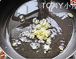 锅内放油,油热下蒜末炒香
