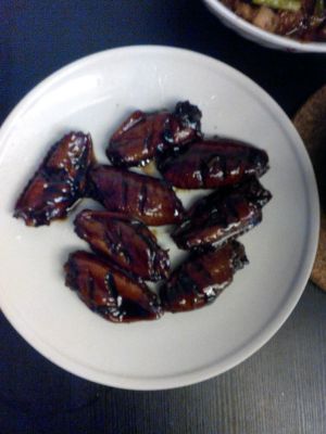盛出鸡翅摆盘 这个有一点焦了 因为放的蒜蓉没捞干净