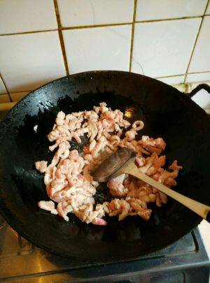 倒入肉丝煸炒(可以放点黄酒)至微黄