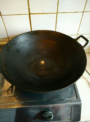 开始准备炒了,锅中加入菜籽油,等锅八成热