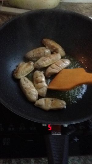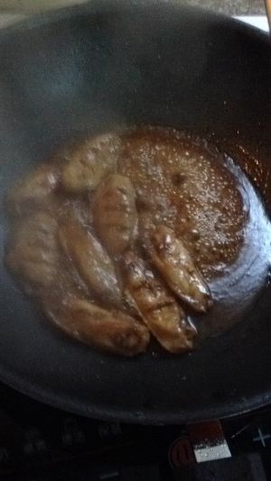 过热水后,在锅里炒到两边变黄以后加入料酒,生抽,可乐翻炒