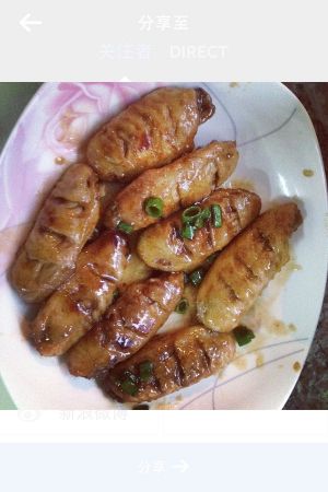 五分钟后开大火收汁,放少许盐翻炒,起锅摆盘,放葱叶