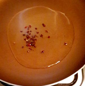 冷锅里加油 加入花椒粉小火煸炒 出香味后 把花椒粒取出