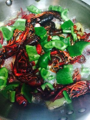 锅内留少许油,下葱姜蒜,炒香后放花椒八角草果白蔻干辣椒段香叶,炒10秒左右,放入小米辣和半块火锅底料(我放的是海底捞牛油的),炒化之后放入炸好的小龙虾翻炒,加入一罐啤酒,加半勺糖适量盐,一点点老抽鸡精。