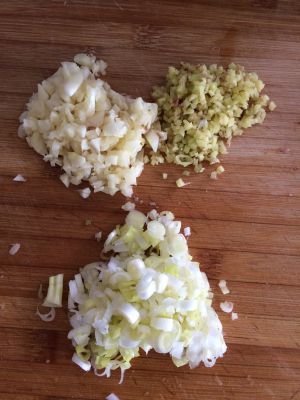 葱姜蒜切末。