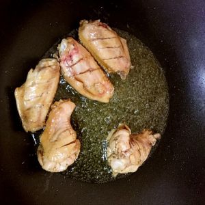姜,八角入锅爆味,鸡翅入锅,炒至变色