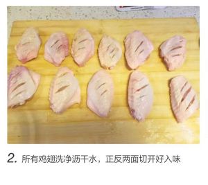 鸡翅洗干净,沥干水,正反两面切开好入味