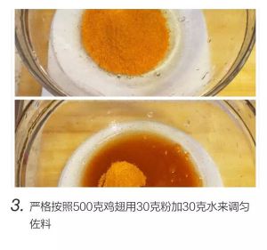 提前一天腌鸡翅:新奥尔良腌料~某宝有卖,2小包倒入碗里兑清水和酱油、红曲粉(可以不放的,刚好家里有就放了,据说有好处也可解腻、增色)搅拌均匀备用。