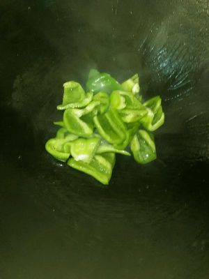 将油倒出来,留一点油炒青椒,加点盐调味